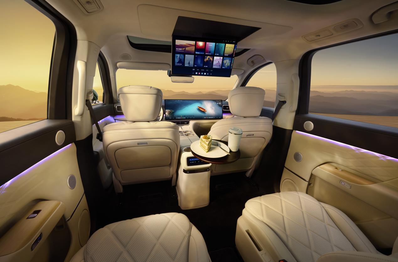 豪华配置方面,17平方米皮质包覆内饰与全车静音系统营造出深空级静谧空间。30英寸6K一体环抱屏与17.3英寸后舱娱乐屏组成移动影院,配合7.5.4.2声道全景声系统与256色氛围灯,打造沉浸式视听体验。1.5TGDI增程发动机与高性能电机组合,实现15分钟快充与超长续航,兼顾动力性能与经济性。