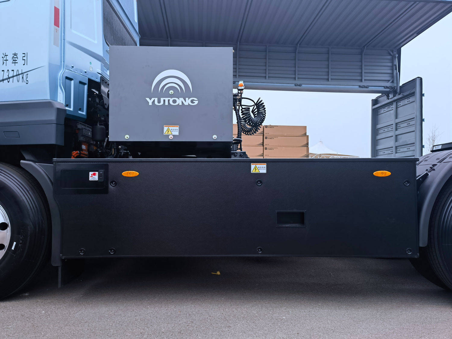 车辆的可靠性与安全性在复杂工况下至关重要。大宗物资运输场景常伴随恶劣路况、连续高强度作业以及多变的天气条件,对车辆提出了更高要求。宇通T575纯电牵引车在这方面表现出色。其自研的深澜850V高压平台电池达到2米72小时行业最高防水等级,结构振动强度为国标的4倍,抗挤压能力达到200KN,在矿场、砂石料等颠簸、多尘、涉水等复杂工况下,电池系统仍能稳定可靠运行。同时,新车三电防水等级达到IP68 + IP6k9k,可承受80℃高温、8至10兆帕高压水流近距离喷射,面对日常冲洗、雨天行驶及短时涉水等场景毫无压力。